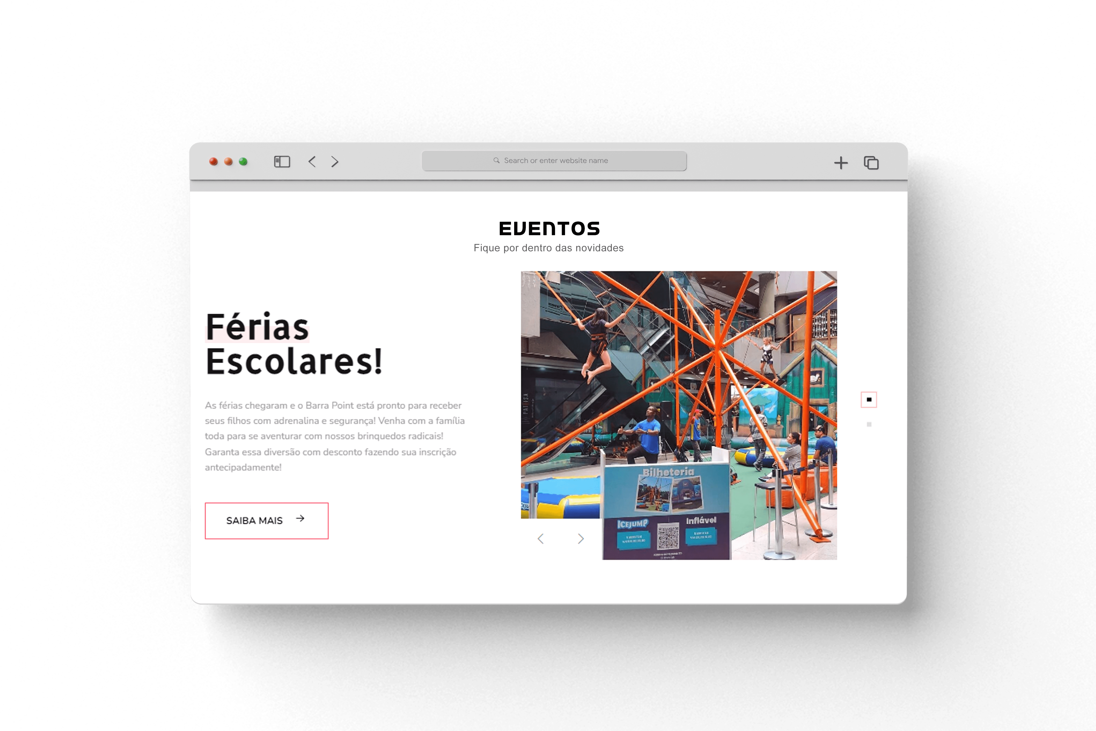 Os administradores do Shopping Barra Point nos procuraram pois queriam um site mais rápido, adaptado para celular e com a possibilidade de incluir lojas para uma maior divulgação no shopping. Também era uma ideia criar uma página de eventos do Shopping para manter os frequentadores sempre atualizados.